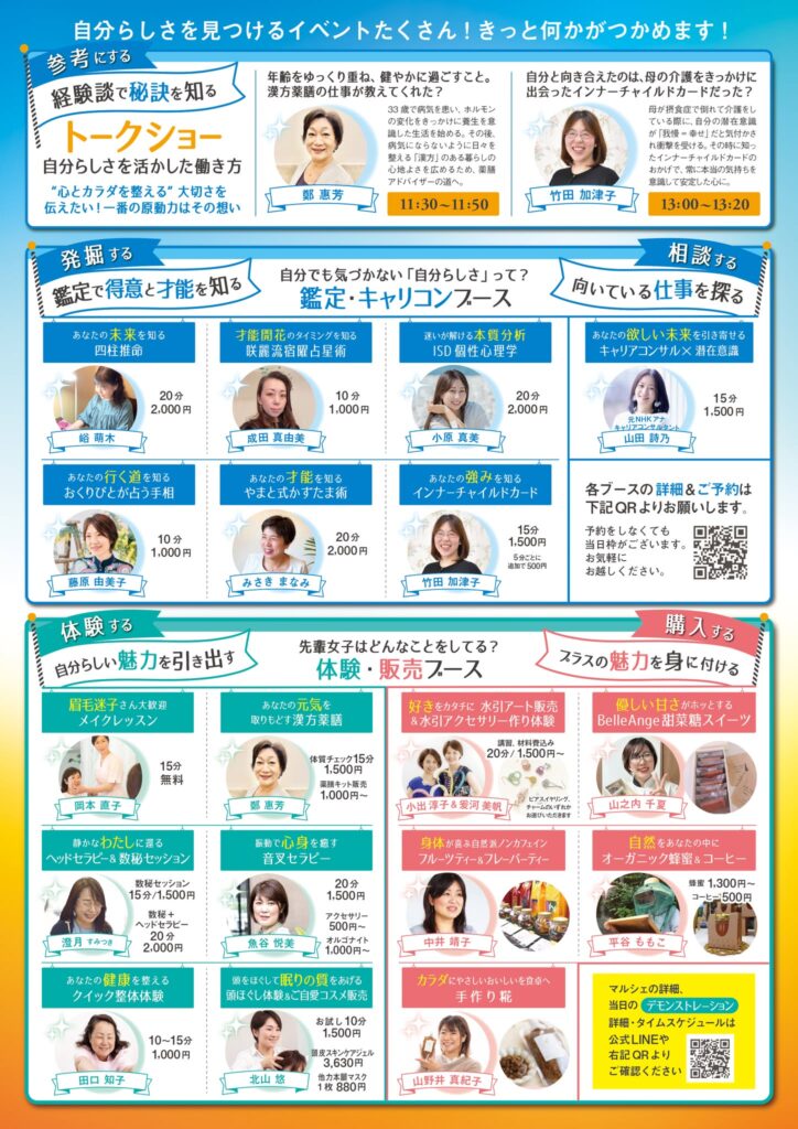 マルシェに参加して 是非「自分さえ知らなかった自分の才能・資質」を発掘してくださいね。